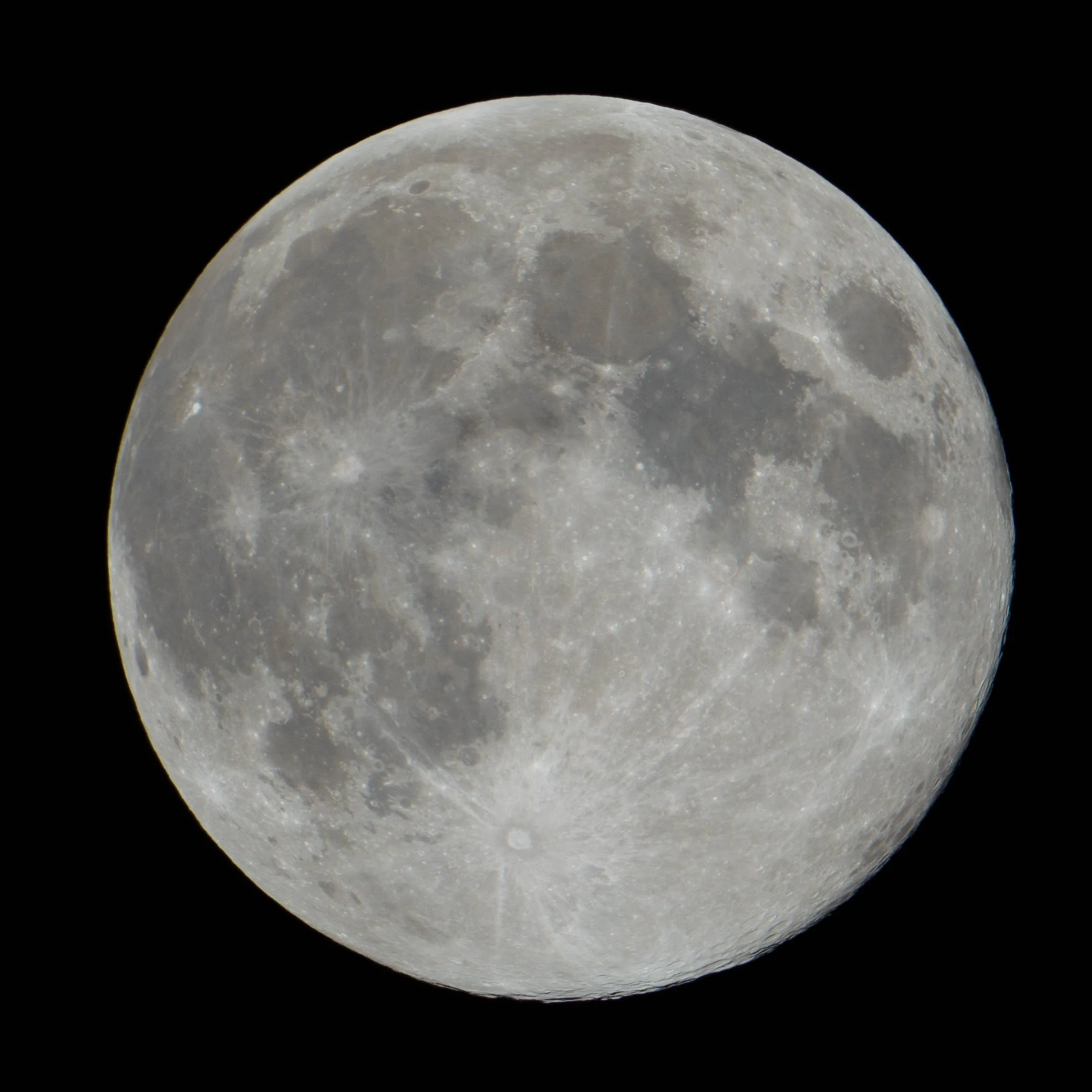 20 images of the Moon, stacked and processed to reduce noise, improve contrast and detail.