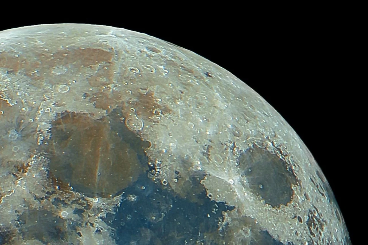 A full Moon is amazingly bright in the night sky. So bright that it is virtually impossible to see that the surface is delicately painted by minerals in the soil and rocks..